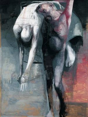 Hierbei handelt es sich um die Variation zum bekannten Gemälde "Aeneas". An der Gouache hat Rink mehrere Jahre gearbeitet, begonnen hat er sie im Wendejahr 1989 und beendet erst 10 Jahre später, wie die Signatur "RINK 99" bezeugt.