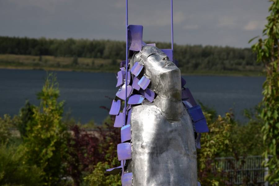 - Art: Skulptur aus Eisenplatten, geklopft, geschweißt und patiniert